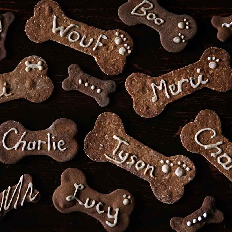 Personnalised dog biscuits, in our tempting peanut butter flavour. Add your dog's name below.